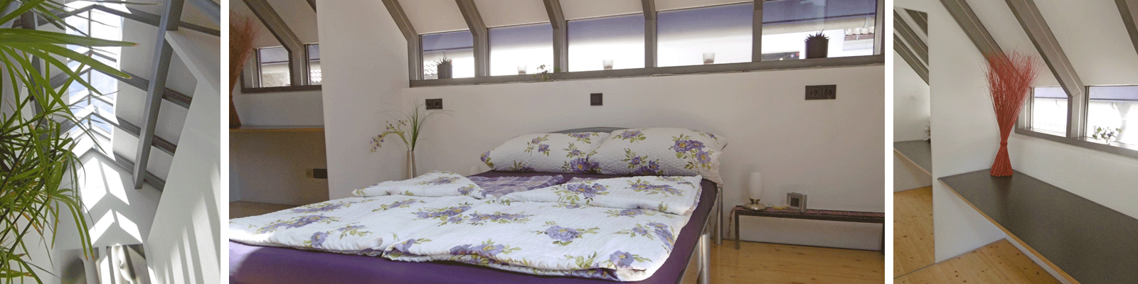 Im DG finden Sie ein großzügiges Schlafatelier (französisches Bett mit 140 cm Breite), einen begehbaren Kleiderschrank und ein schönes Badewannenbad mit WC.
